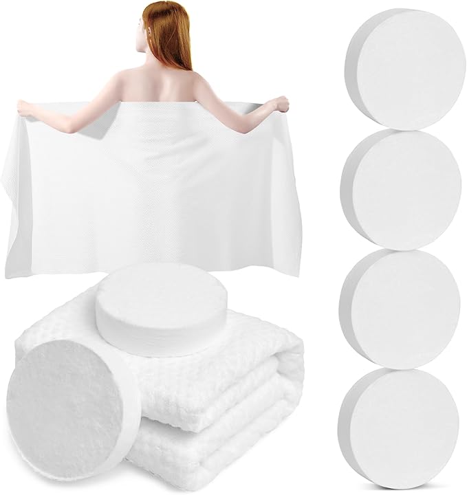 MCPINKY 4PCS Compressed Towel Tablets, 40 x 27.5in Reusable Travel Towels Compressed Bath Towel Portable Magic Towels for Camping Hiking Face Washing Toilet Swim