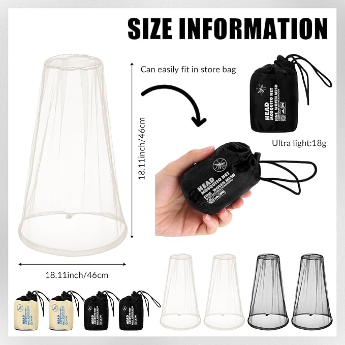 - Material: mosquito head net is made of nylon with a elastic band at bottom, breathable and good for preventing your face neck from flies