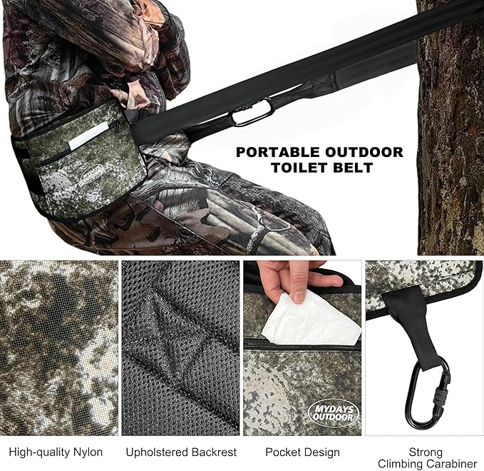 - MULTI-FUNCTION USE: This can be used not only as an outdoor toilet belt but also as a fatigue relief stool, perfect for hunting, camping, fishing, hiking, outdoor activities, etc. Ensuring our can participate in any outdoor sports and truly relax.