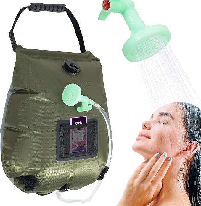 • 【Upgraded Adjustable Shower Head】Our camping shower bag comes with an upgraded shower head for easy on/off control, offering a range of water flow adjustments from low to high. With a simple turn of the knob, it meets various outdoor showering needs, enhancing your camp shower bag experience.