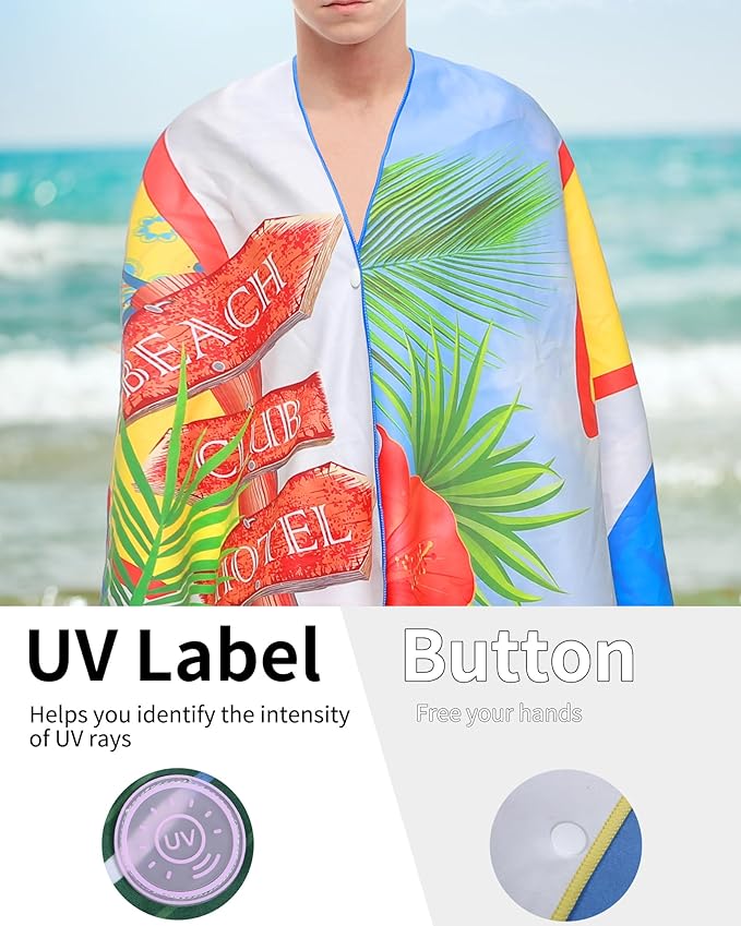 - [ Towel with UV Label ] Microfiber beach towels come with UV labels to help you identify UV intensity. These labels gradually turn purple with increasing UV levels. Beach towels come in novel seaside patterns for men and women.