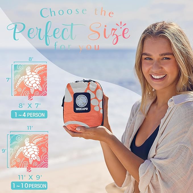 WEKAPO Beach Blanket Waterproof Sandproof Oversized Extra Large Sand Free Beach Mat with Stakes, Storage Bag - Essentials for Outdoor Beach, Picnic (Sea Turtle, 11 X 9 FT (1~10 Person))