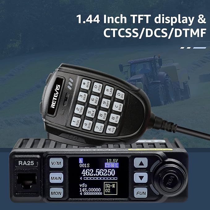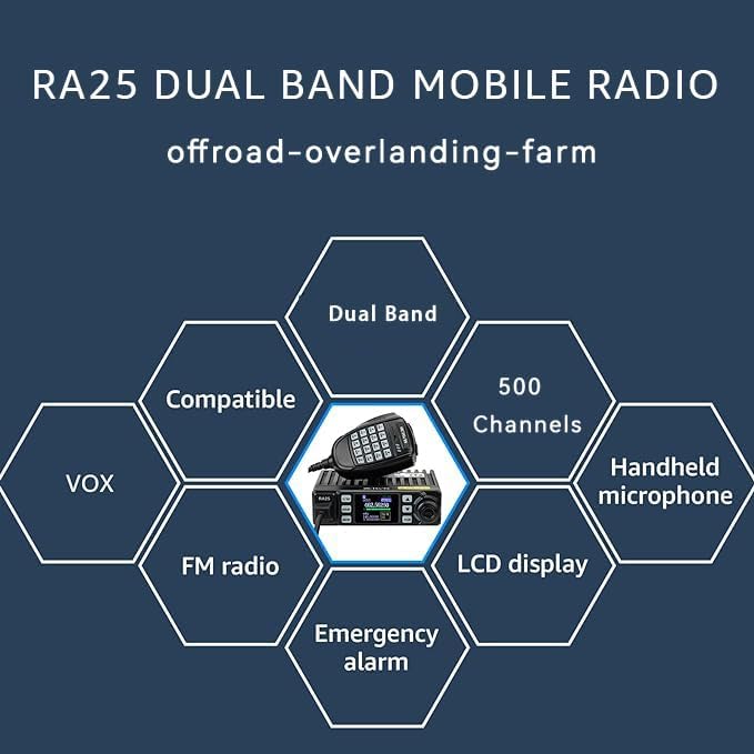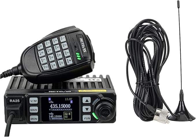 Retevis RA25 Dual Band Mobile Radio, Mini Mobile Transceiver with MR100 High Gain Antenna, 500 Channels, FM radio, Emergency Alarm, VOX, Long Range Mobile Two Way Radio for Traveling Farm
