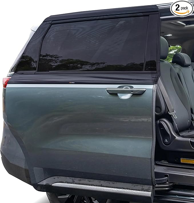 EcoNour Car Window Sun Shades for MPV & Minivan Sliding Door Rear Windows | Elastic Mesh Sunshade for Baby & Passenger Comfort | Car Window Accessories | 2 Pack Side Window Shades