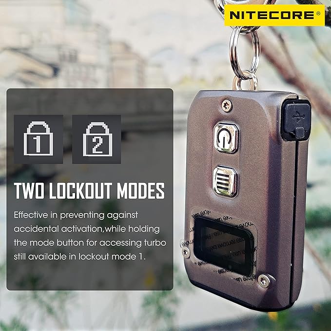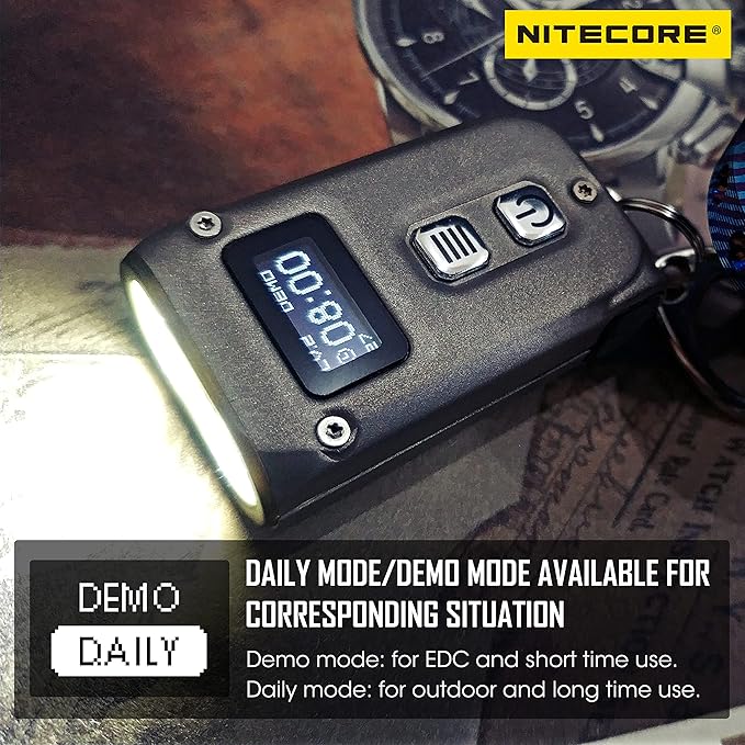 - The multifunctional OLED real-time display is always ready to show the current flashlight status including battery level & voltage, brightness level, current user mode, and runtime remaining. Also inherited from the NITECORE Flagship Product TM10K, the TINI 2 Ti is available for two different levels of lockout modes for various storage, daily or emergency needs.