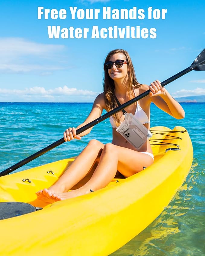 • Free Hands For Water Sports - The waterproof bag with adjustable waist belt can be used as a waist bag or crossbody bag; Sturdy lanyard on the top of the cell phone waterproof pouch for easy carrying; Free your hands and have fun for surfing, kayaking, boating, fishing or waterpark!