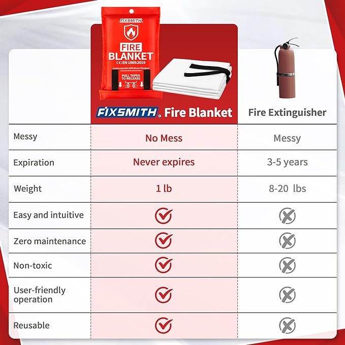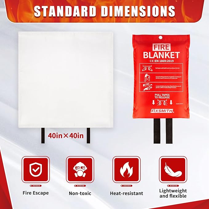 FIXSMITH Fire Blanket for Home and Kitchen, Emergency Fire Blanket, Flame Suppression Fiberglass Fire Blankets for House Camping Car Office Warehouse Emergency Survival Safety- 40 in x 40 in