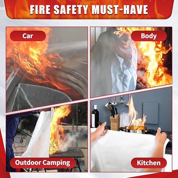- Fire Blankets for Safety: Protect your home and kitchen with our advanced fire blankets. No mess, no traditional extinguishers needed. Our survival blankets suppress flames, handling liquid, grease, and different fire types. Essential for fire safety and car survival kits.