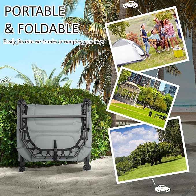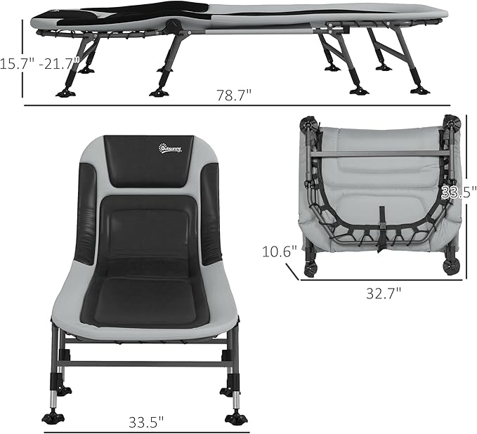 Outsunny Camping Cot for Adults, Folding Bed with Soft Padded Cushions & Headrest, 180° Adjustable Reclining Lounger, Heavy Duty and Portable with a 400 lbs. Capacity, Gray