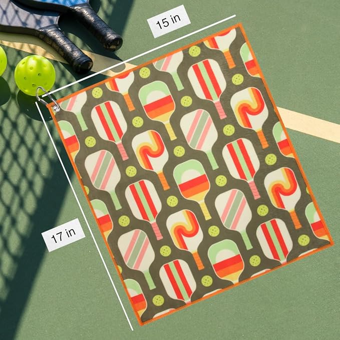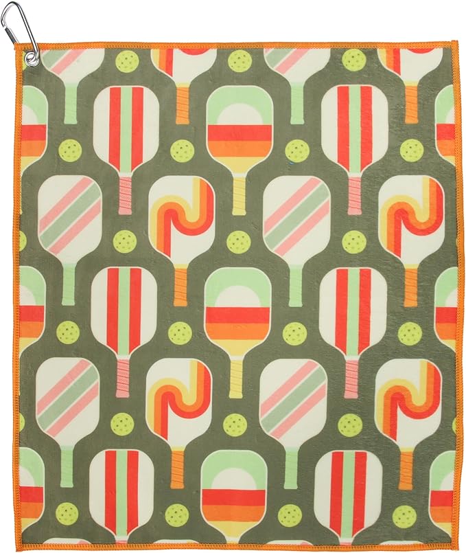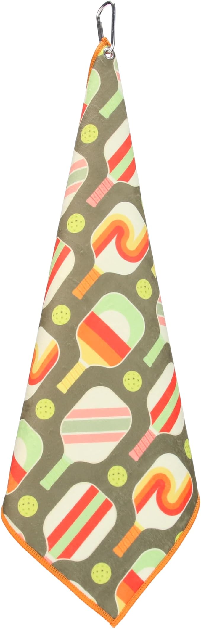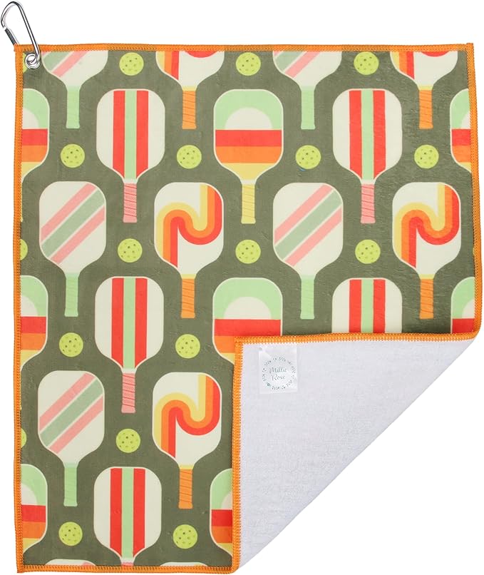 Millie Rose Pickleball Towels in Fashionable Prints - Cute 15x17 inch Microfiber & Cotton Athletic Towels with Carabiner Clip - Pickleball Accessories, Pickleball Gifts (Retro Pickle)