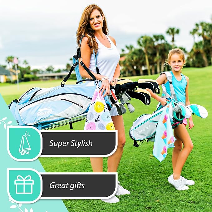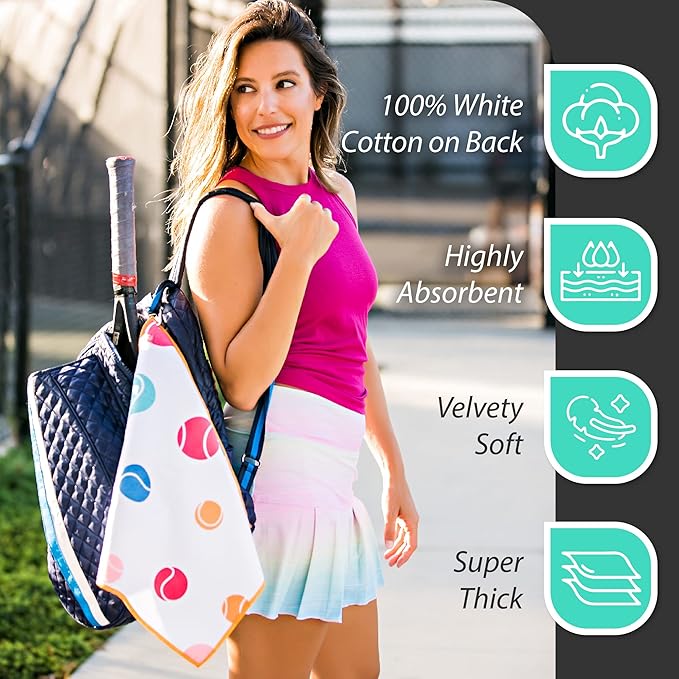 - TWO AMAZING FABRICS ON ONE TOWEL: Our Millie Rose sports towels have TWO premium fabrics which make it the best athletic towel on the market and enhances utility. Each towel has ultra soft, absorbent, premium microfiber on the front side with a fashionable, unique print and 100% high quality white cotton on the backside. Each towel is 15” x 17’’ - the perfect size for any golf, tennis, pickleball, or sports bag or backpack. Two different fabrics create the ultimate versatility!