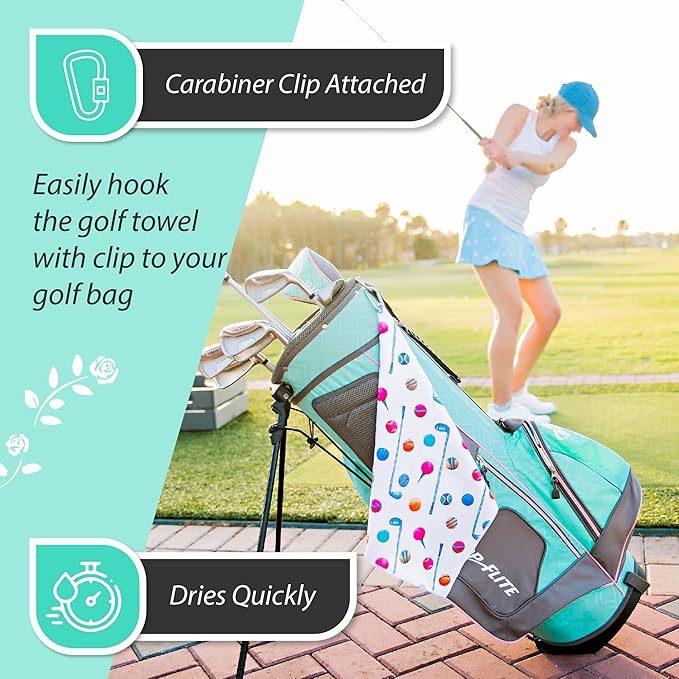 - CARABINER CLIP ATTACHED - Easily hook your Millie Rose towel with the carabiner clip to your golf bag, tennis backpack, pickleball bag, or to any sports bag or backpack. Keep your microfiber athletic towel nearby always. It is so convenient to have a Millie Rose towel clipped to your sports bag for ease of use with wiping off perspiration or dirt/water instead of having to search around for a towel in the bottom of a backpack.