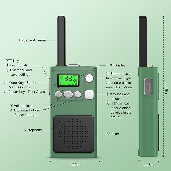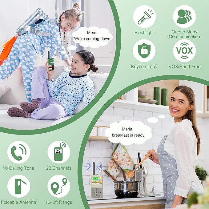 - 2-Way Radio - Simple to use, kids, adults, and seniors can operate. The multifunction walkie-talkie with the flashlight, keypad lock, VOX, Call Remind Tones, Group Talk, etc. which opens a world of possibilities within your children's activities!