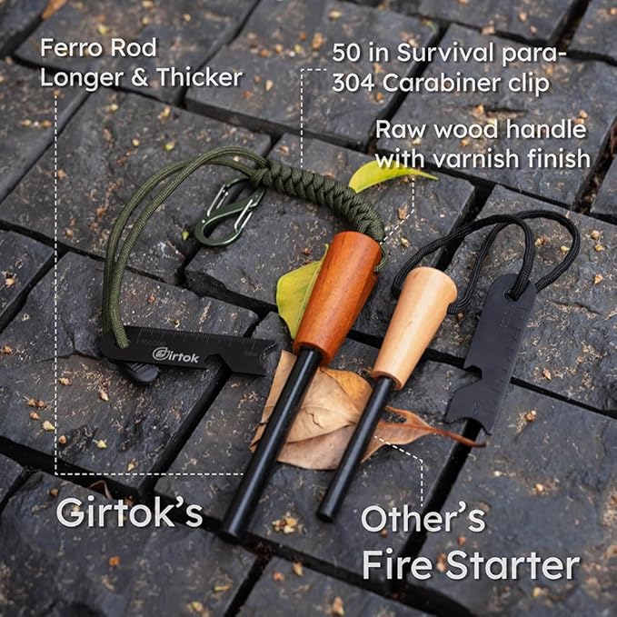 - More Suitable For Men's Hands: Our fire starter features high quality wooden handles.Extra long ferro rod make it easier to generate sparks, enduring over 20,000 strikes at 5,500 F (3,000 C).It is an excellent camping and fire starter survival tool that more suitable for men's hands,Making fire as easy as pie!