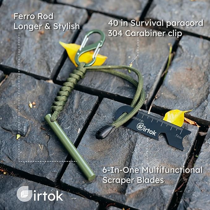 Camping Fire Starter Survival Tool,Large Size & Stylish Eye-catching Colors Ferro Rod with a Hemp Wick,Carabiner Clip & Survival Paracord,Survival Kit for Camping, Hiking & Emergency