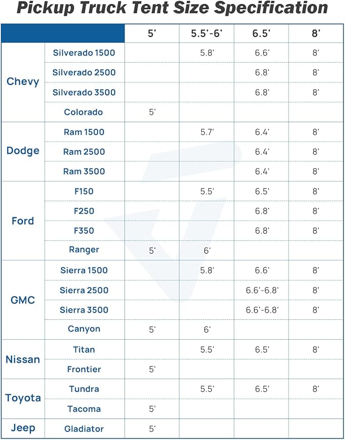 - Compatibility: The truck bed tent will fit for pickup trucks with a 6.5 ft truck bed. Compatible with F150, Ram, Silverado, Tundra, Sierra, Titan, etc. Perfect with Joytutus truck air mattress for comfortable car camping, fishing, hiking, etc