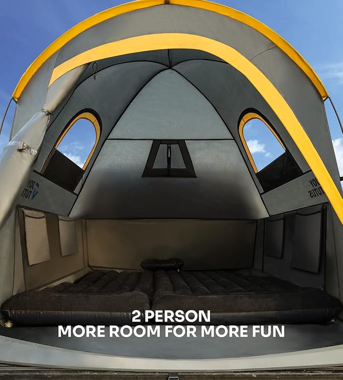 - Excellent Water-resistant Performance: JOYTUTUS pickup truck tent made of 150D polyester oxford, with PU2000 water-proof coating, rainproof and waterproof can be achieved without install the canopy extra. The bottom of the tent has a waterproof layer to avoid rainwater infiltration, can be placed our truck air mattress, the inner space always keeps clean and dry