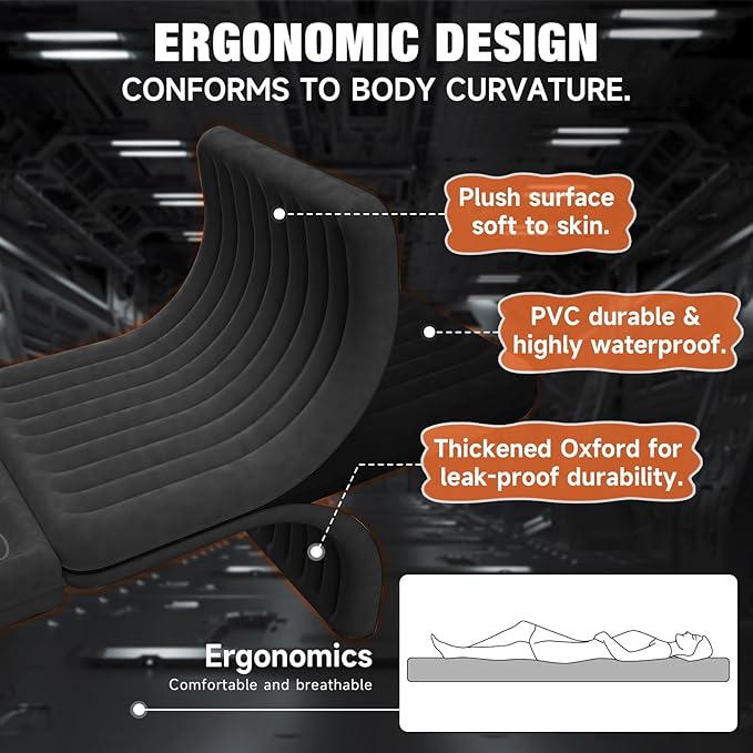- PLUSH SURFACE: Our camping air bed features thick flocking and premium PVC for skin-friendly comfort. Textured surface & sturdy construction ensure shock absorption for your family's relaxation