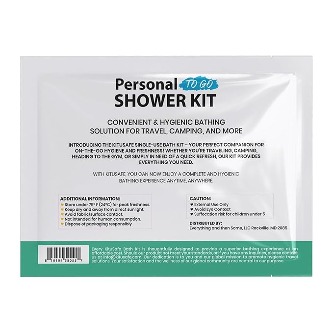 - PORTABLE HYGIENE SOLUTION: Our Personal Shower To-Go Kit is expertly designed for those on the move. Perfect for travel, gym visits, camping, or any outdoor activity, it provides a refreshing shower experience wherever you are.