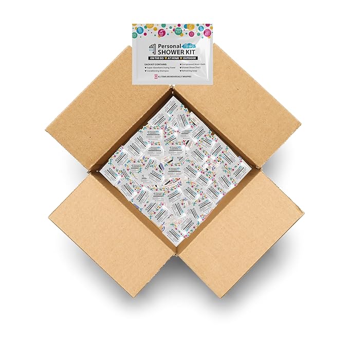 - ALL THE ESSENTIALS YOU NEED: Each Individual Pack comes with: 1 Conditioning Shampoo, 1 Bar of Soap, 1 - Compressed Wash Cloth, 1 - Pair of Shower Shoes and 1 - Drying towel packed together in a convenient to carry plastic zip lock bag.