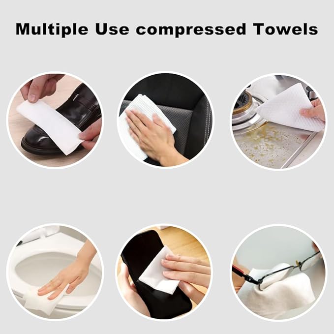 - 【Multiple Uses】 These compressed towel tablets have a wide range of uses. They are perfect for use both indoors such as kitchen, bathroom, salon, hotel, office, and outdoors, for example, travel, camping and hiking. Whether you need them for home or business occasions, these towels are versatile enough to meet all your needs.