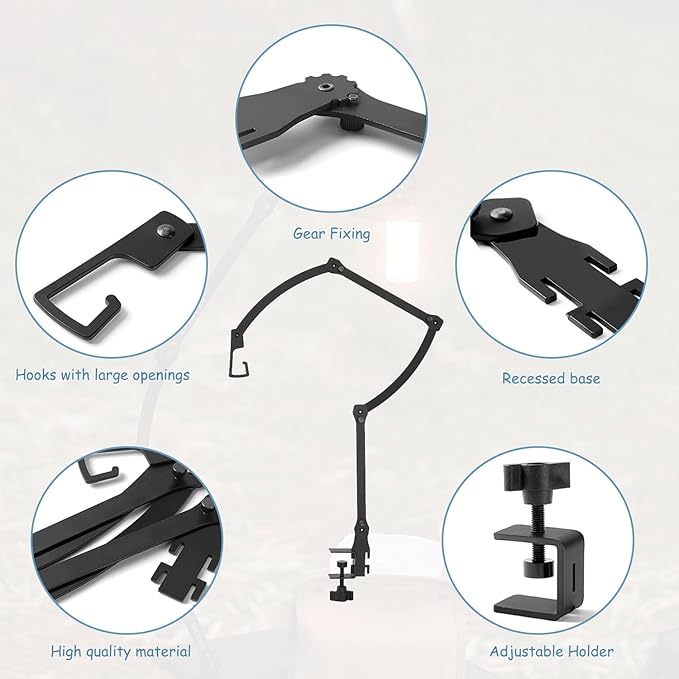 Collapsible Lantern Stand for Camping Heat lamp Holder Portable lamp Holder Camping lamp Accessories Camping Equipment Camping Essentials Reptile Heat lamp Holder (360°Swing arm)