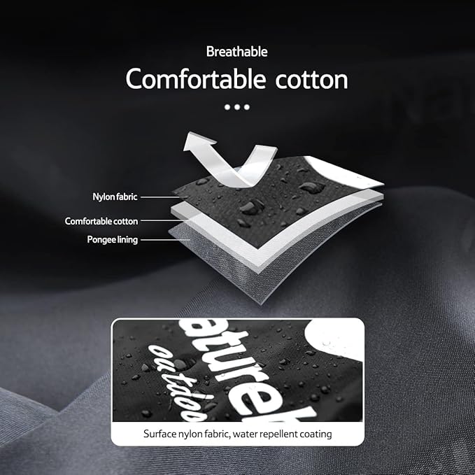 - High-quality fabrics: The fabric combination of 240T polyester pongee + 20D 380T nylon is not only skin-friendly but also water-resistant, which is ideal for outdoor activities.