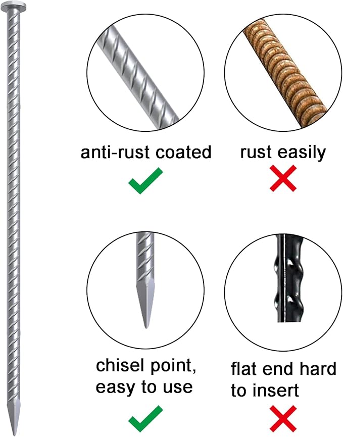 - Galvanized & Sturdy Steel - Landscape timber spikes 12 inches are made of threaded steel with a galvanized surface coating installation, firmly in various hard surfaces. Long-lasting design is weather-resistant and rustproof