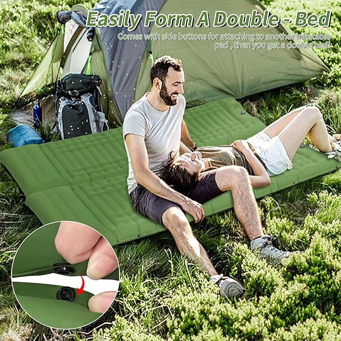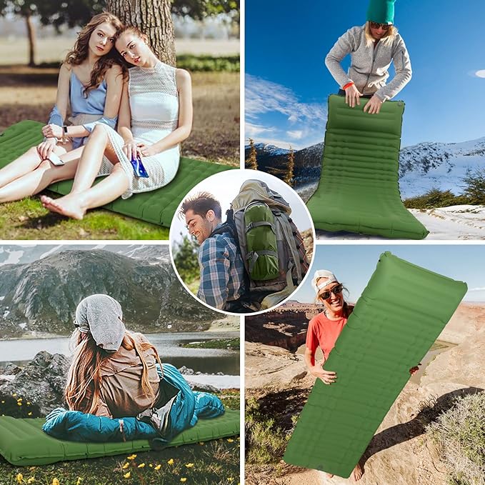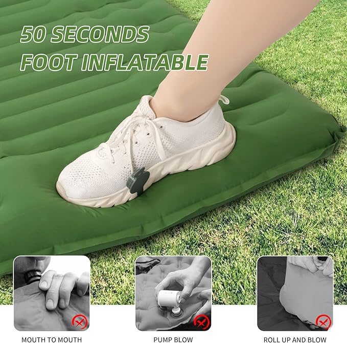Inflating Sleeping Pad for Camping.LORPECT 4.5 in Thick Sleeping Mat .Compact Waterproof Camping Air Mattress with Pillow.Foot Pressure Inflatable Camping Pads for Backpacking & Hiking. (Green 1)