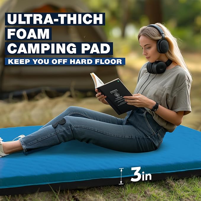 Overmont Self-Inflating Sleeping Pad - 3”Thick Memory Foam Camping Pad - Inflatable Camping Mattress Pad Sleeping Mat for Car Truck Travel Tent - 4 Season Durable Comfortable