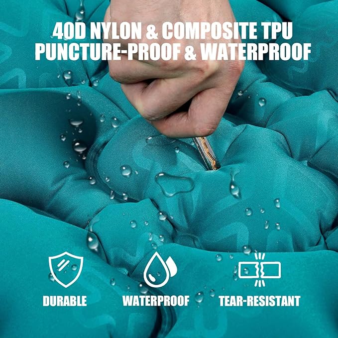 - 【Excellent & reliable quality】 Brace yourself for exceptional durability with our camping sleeping pad. Crafted from premium 40D nylon & TPU materials, it withstands the weight of 440lb after inflation. Puncture-resistant and built to last, it's the perfect choice for all your outdoor escapades. Trust in its excellent and reliable quality to elevate your outdoor adventures to new heights