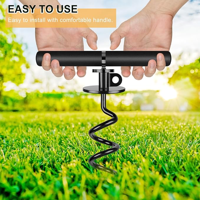 - 【EASY TO INSTALL AND USE】Spiral designed dog anchor is easily screwed into and out of the ground using the included torque bar, as tight as possible. Then simply attach any leash or cable of your choice.