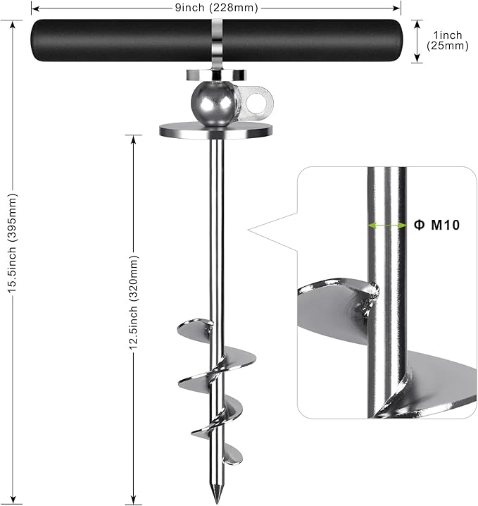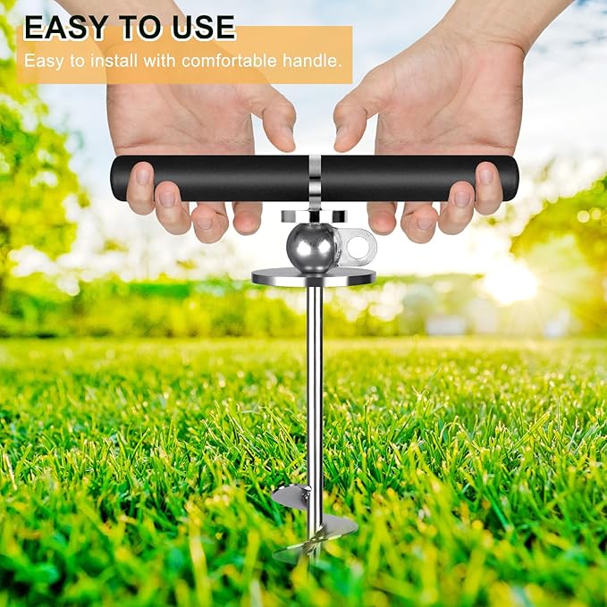 - 【EASY TO INSTALL AND USE】Spiral designed dog anchor is easily screwed into and out of the ground using the included torque bar, as tight as possible. Then simply attach any leash or cable of your choice.