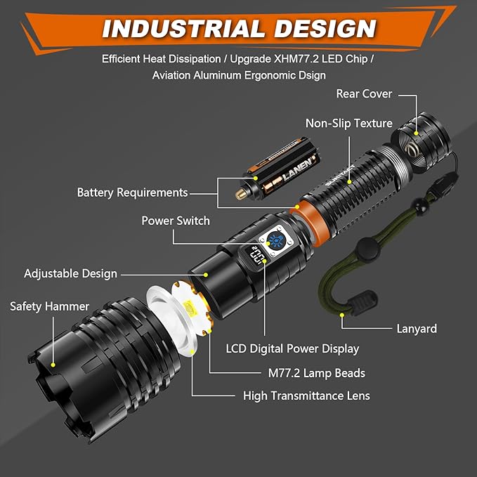 - Special Feature : Long Range, High Power, Adjustable Light Modes, Impact Resistant, Rechargeable