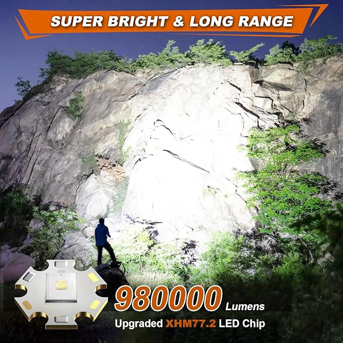 Flashlights High Lumens Rechargeable, 980000 Lumens XHM77.2 LED Flashlight Super Bright Flash Light Battery Powered, Powerful Flashlights Handheld Linternas for Emergencies Camping