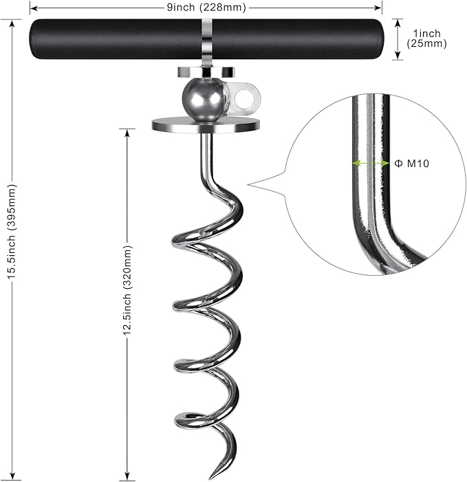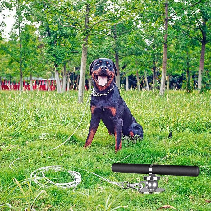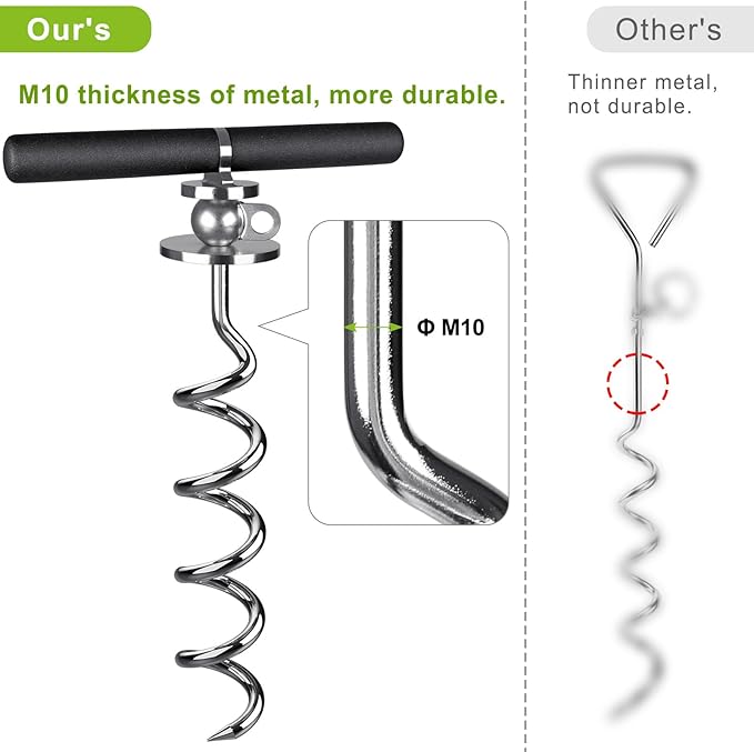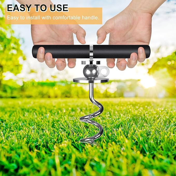 - 【EASY TO INSTALL AND USE】Spiral designed dog anchor is easily screwed into and out of the ground using the included torque bar, as tight as possible. Then simply attach any leash or cable of your choice.