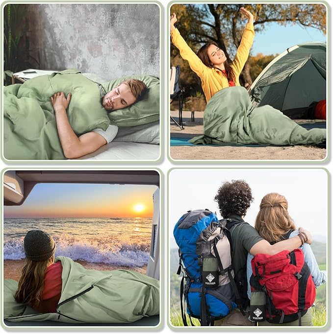 Sleeping Bag Liner, Sleep Sack Travel Sheets, Two-Way-Zipper Expose Feet Separately, Portable Single Camping Sheet for Hotel,Hostels,Business Trips