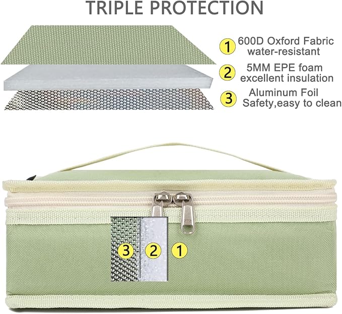 - ✿ Portable:Handle and could easy put into backpack or large handbag.Soft grip handles of Lunchbox is designed for convenient carrying, inner mesh pocket can separately stores ice pack and tableware. Easy to clean and dry, just wipe it with a wet cloth.