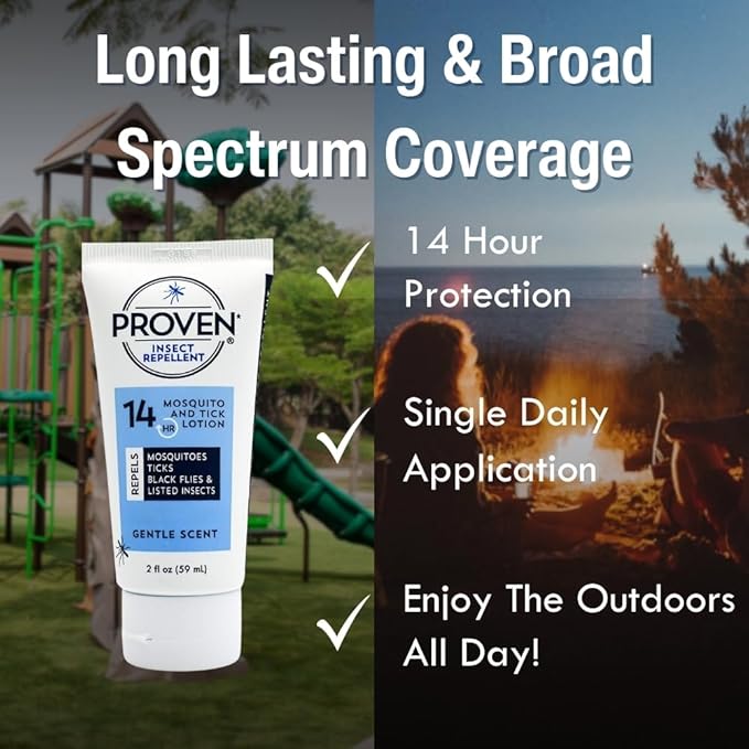 - LONG-LASTING AND BROAD SPECTRUM – With a Single application, Proven Insect Repellent Lotion effectively repels mosquitoes and ticks for up to 14 hours, and Repels flies, gnats, chiggers, and no-see-ums for up to 8 hours