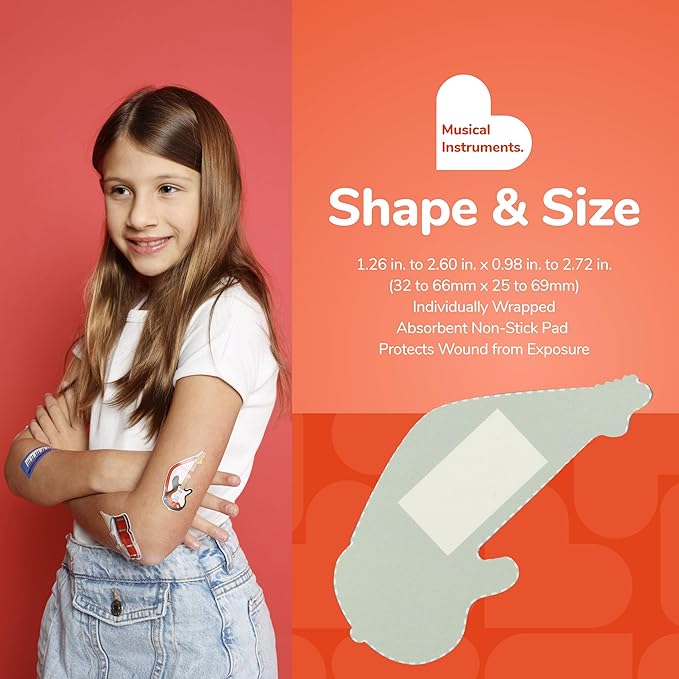 - SAFE PACKAGING: These sterile Musical Instruments bandages come in cute and adorable packaging, and are individually wrapped for safe handling; small bandages help protect kids' sensitive wounds from coming into contact with dirt for first aid wound care