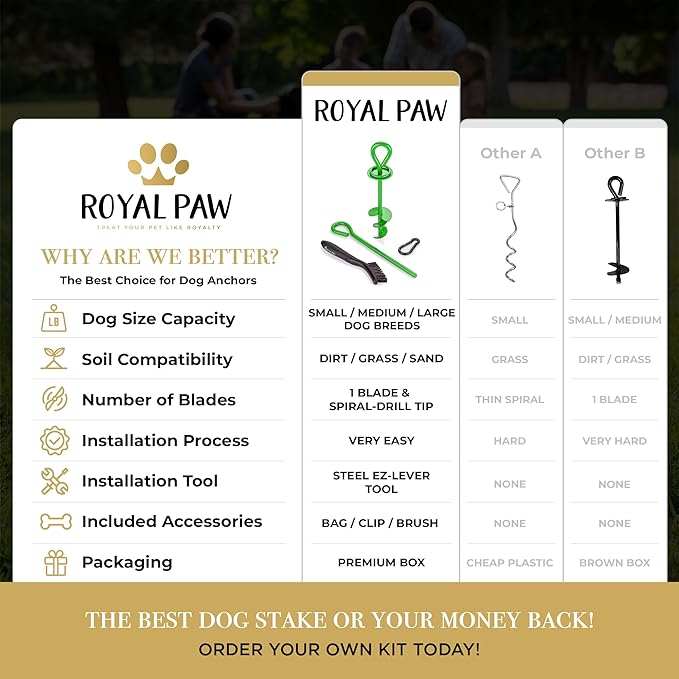 - GOT A LARGE DOG? The Royal Paw Tie Out Stake was designed with heavy pullers in mind — hold back extra large breeds up to 200+ lbs. You can rest easy knowing your dog stake can do all the heavy lifting. Try it out!