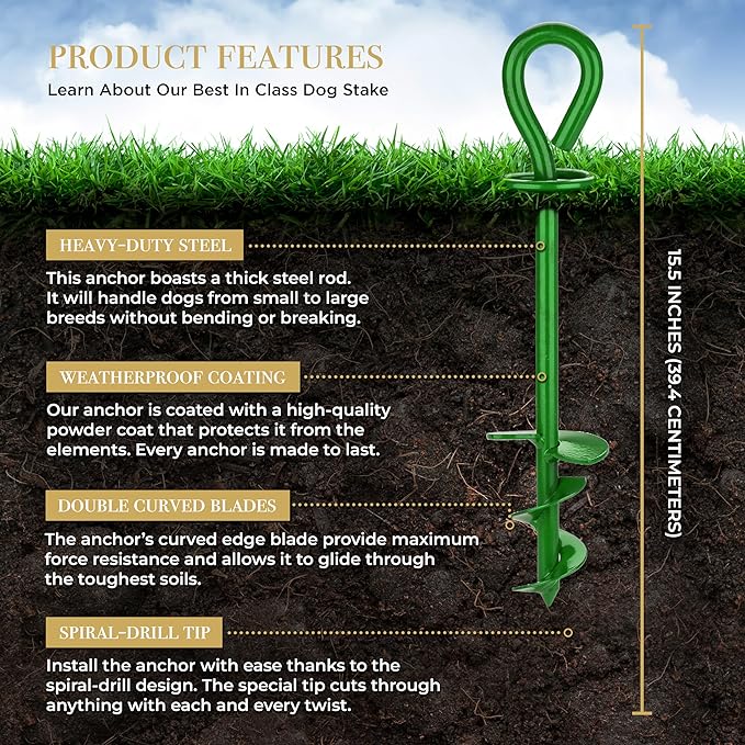 - DESIGNED IN THE USA! Your Heavy Duty Tie Out Stake has exceptional build quality and is made to last. Each purchase comes with a LIFETIME WARRANTY upon registration! Have issues? Our experts are on standby and will reply to you in 12 hours or less.