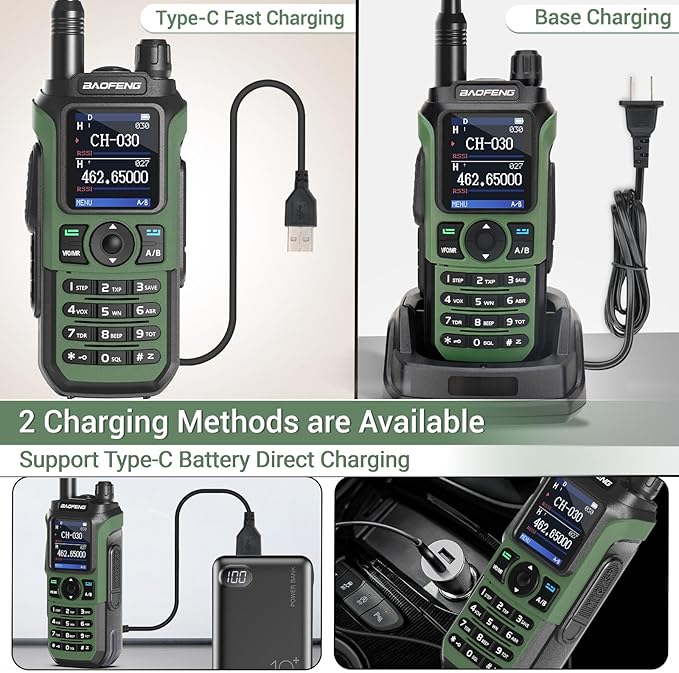 - ✅【USB-C +Desktop Charger】 The Type-C charging port is designed on the back of the battery. Two charging methods making convenient for you to charge anytime and anywhere. When you go out, you can charge your walkie talkie on the car, power bank, laptop, wall or any USB interface device, no longer worrying about battery life issues.