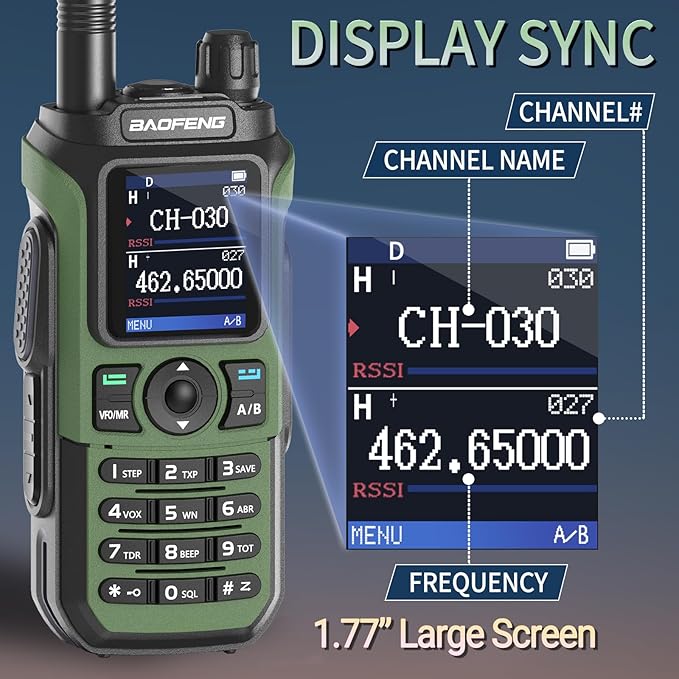 - 🔥【Upgraded of UV-5R 】Up to 999 memory channels,1.77'' large color screen, copy frequency feature, full keyboard, expanded battery capacity from 1500mAh to 1800mAh, Support Type-C charger, the enlarged walkie talkie body size, VOX free hand, 21CM high gain antenna for improved reception.