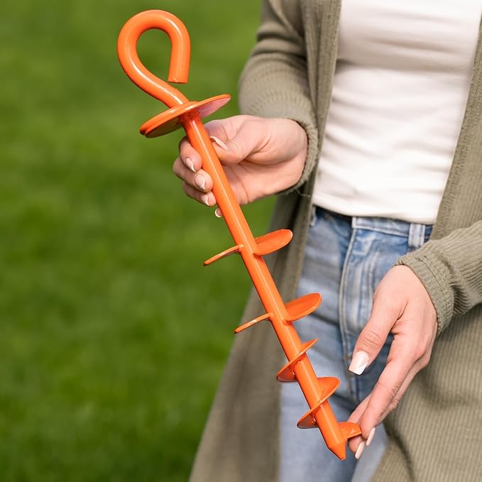 Dog Tie Out Stake - Heavy Duty Dog Stake for Large Dogs up to 210 lbs, Dog Stakes for Outside to use with Any Dog Tie Out Cable or Dog Leads for Yard (NO1-Orange) (Anchor Only)