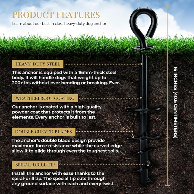 Dog Tie Out Stake - Heavy Duty Dog Anchor for Large Dogs up to 210 lbs, In Ground Yard Post to Tether Long Leash and Cable Leads with Dog Stakes for Outside (Anchor Only)
