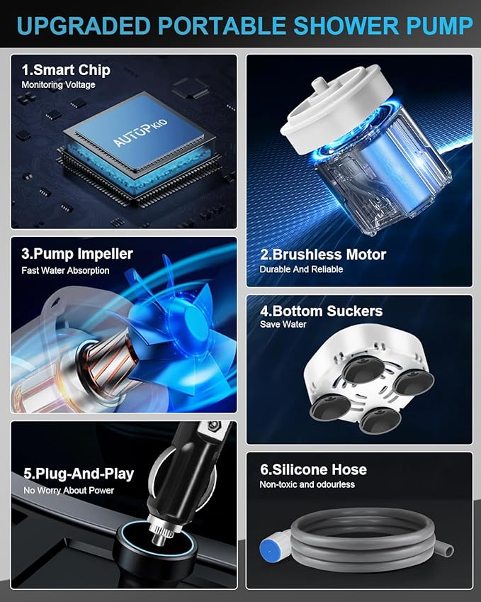 AUTOPkio Portable Camping Shower, Plug-and-Play Camp Showerhead Kit with Brushless Motor Camp Shower Pump for Outdoor Hiking, Rv TravelB0CWXFFNYG