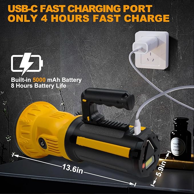 - 【Handle Outdoor Rechargeable Lights】This work light designed with a detachable handle so you can hold it or lift it up,with this funtion it's convenient for you to search somehting or outdoor walk at night, provides extra bright flood light.