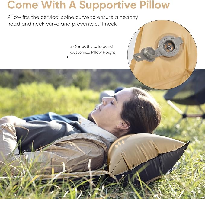 - 【Fast Inflation】Rotate the nozzle to inflate the pad automatically. After that, give a few puffs for a fuller pad. To deflate, squeeze the air cushion. Note: The pad is professionally vacuum packed so the first inflation may take up to 20 mins