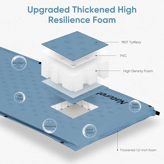 Naturehike Self-Inflating Double Sleeping Pad, Camping Mattress 2 Person, Ultralight Memory Foam Pad with Pillow, Fast Inflating, Patchwork Sleeping Pad for Camping, Hiking, RV Camping, Full, Blue